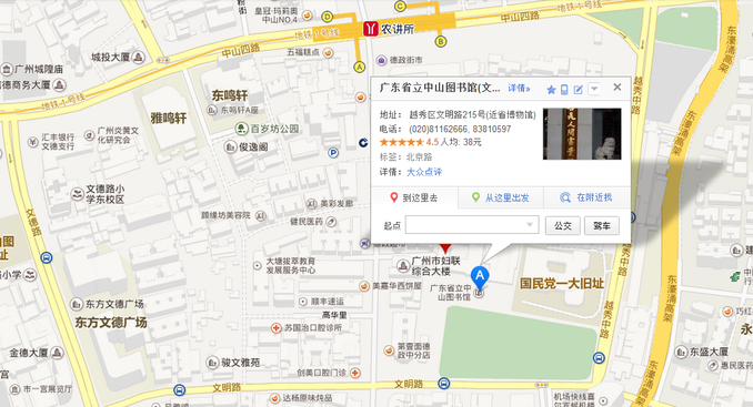 交通指引: 地铁: 广州地铁1号线农讲所站 A出口,直行约500米至文明路左转即到。